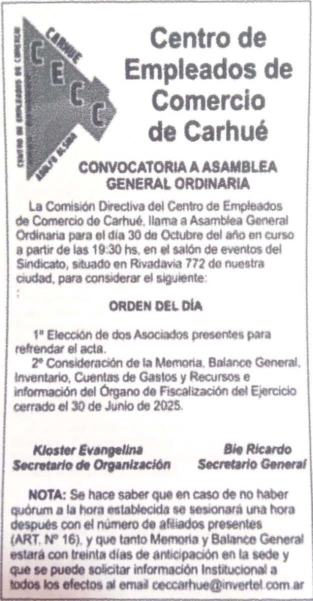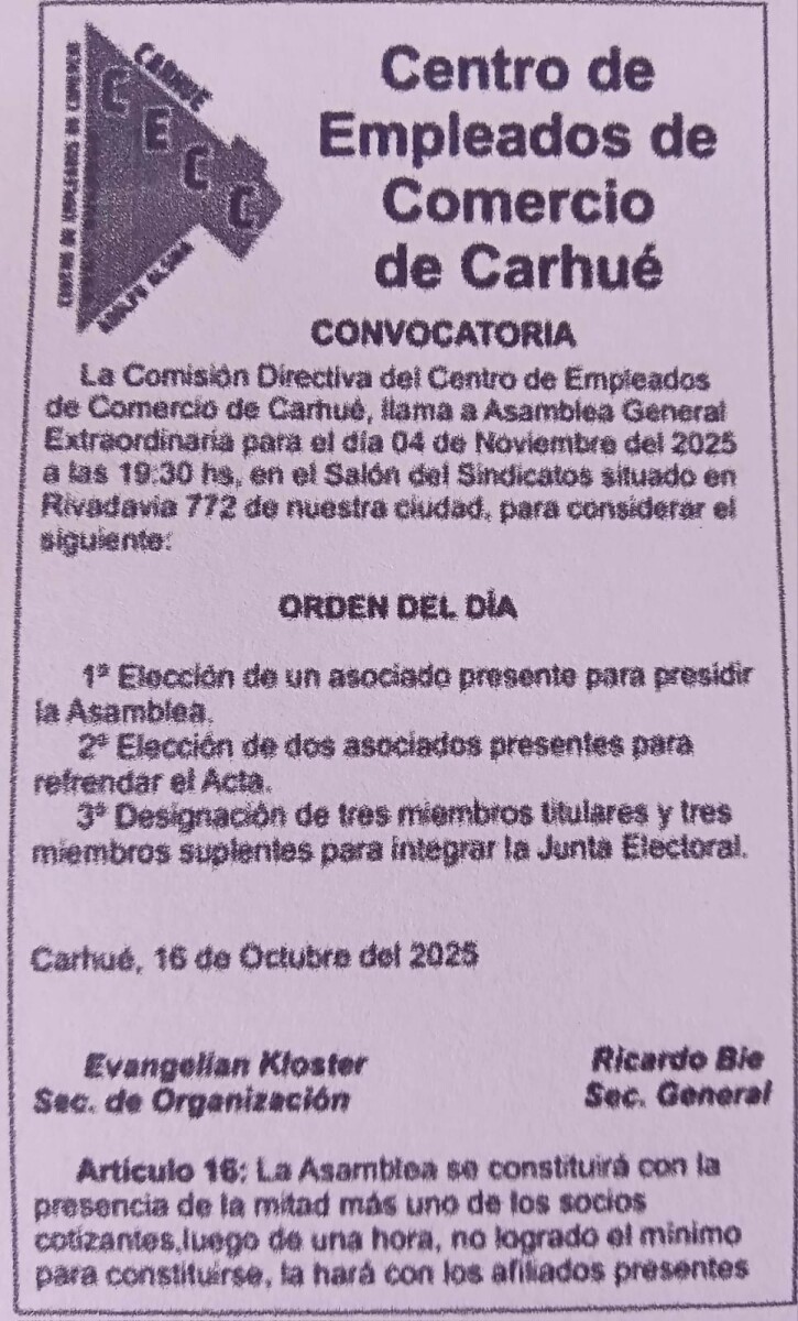 CONVOCATORIO ASAMBLEA EXTRAORDINARIO